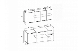 | Глубина верхних шкафов (мм) | 300 |