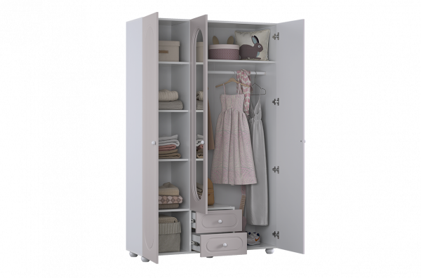 Шкаф трёхдверный Милана гармонично сочетается с другими модулями серии и подходит для создания удобной и функциональной системы хранения в детской комнате.
