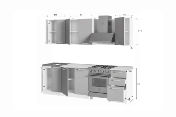 | Высота верхних шкафов (мм) | 718 |