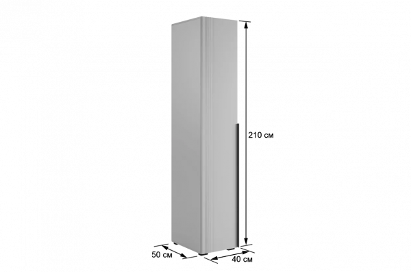 Особое внимание заслуживает фрезеровка фасада, которая придаёт шкафу изысканный вид. Длинная пластиковая ручка гармонично дополняет общий стиль.