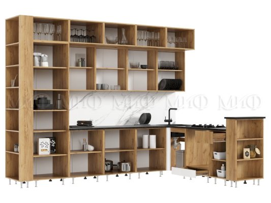 Угловой кухонный гарнитур Техно-5 3,2х2,24 м (Миф) продается в интернет-магазине mebelin-vidnoe.ru по цене 73 474 руб. Есть доставка по Видному и Московской области. Возможность подъема на этаж и сборки уточняйте у менеджера по телефону 8(800)505-27-11.